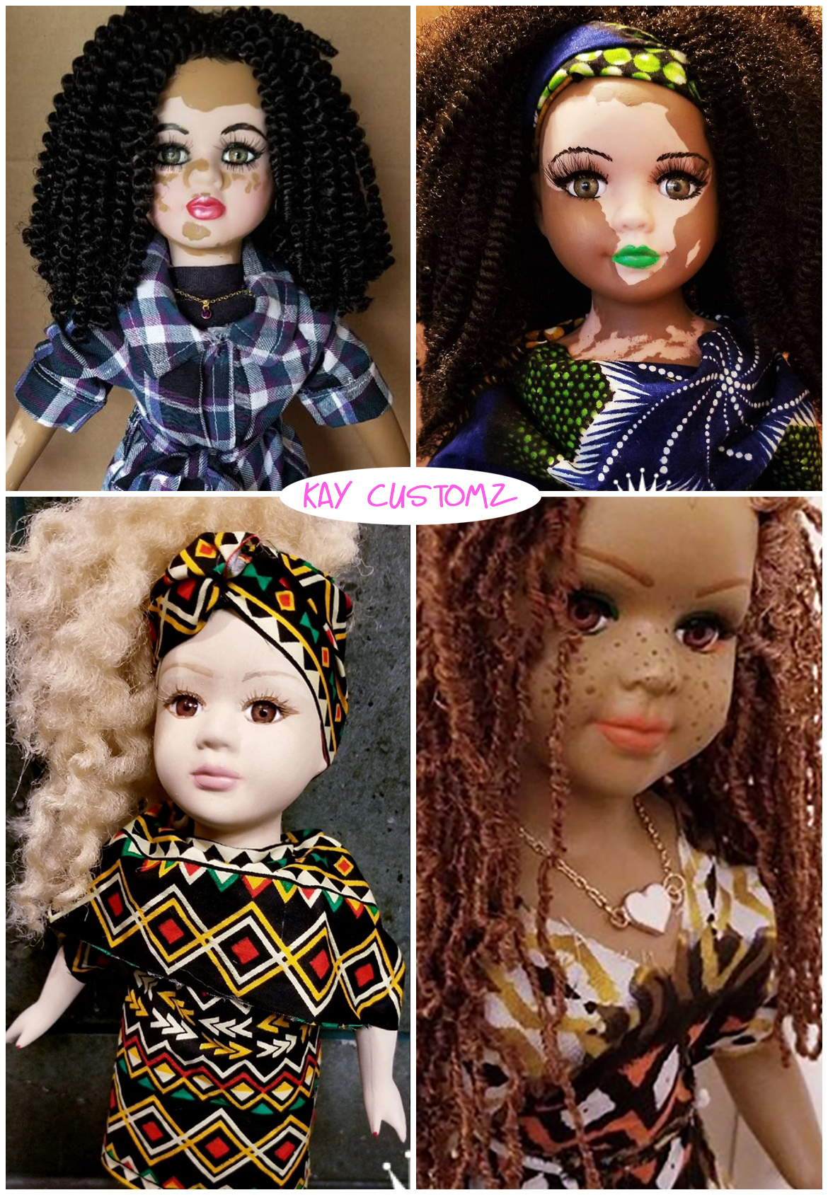 Tra le sue creazioni troviamo bambole con la vitiligine (la condizione della pelle che presenta macchie più chiare sul corpo), con l’albinismo (depigmentazione della pelle, scarsa tolleranza alla luce), o bellissime bambole afro (con vestiti tipici, e capelli riccissimi).