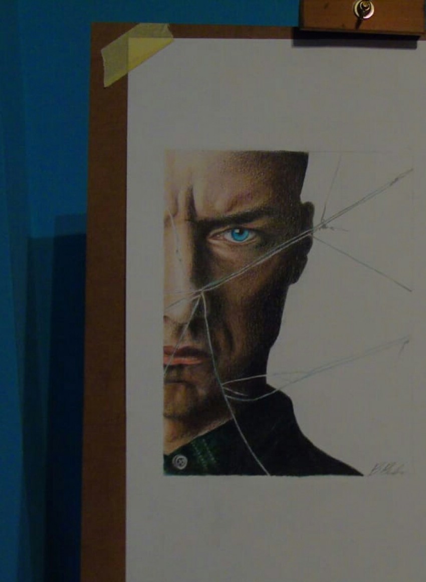 Ritratto di James Mcavoy nel film "Split* con matite colorate