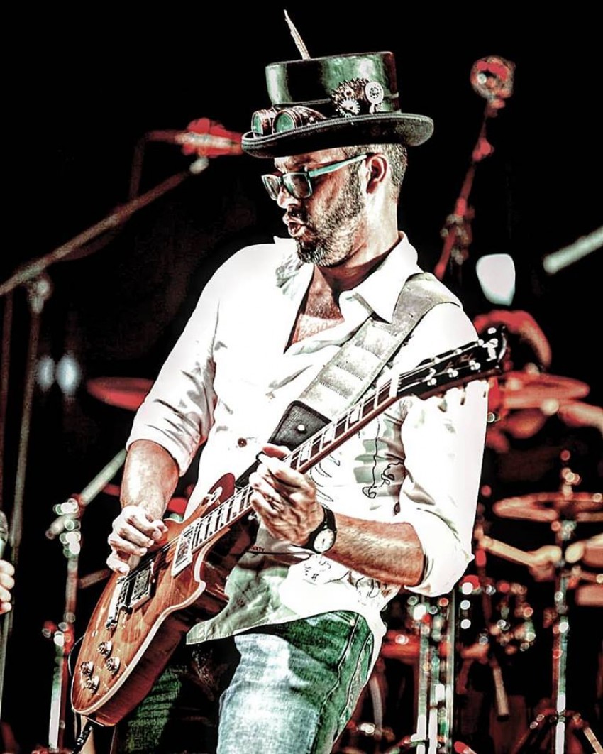Lex chitarrista degli SPIRITI RIBELLI in azione nella finale del Nettuno Music Lab 2018