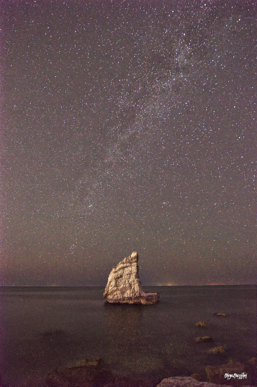 Scatto notturno sulla spiaggia di Portonovo (AN) - Lo scoglio della Vela, il cielo stellato e la Via Lattea