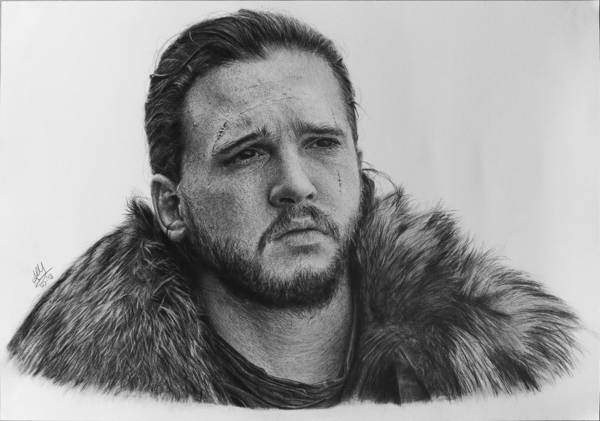 Ritratto iperrealistico di Jon Snow aka Kit Harington. Eseguito su Fabriano artistico satinato con l'ausilio di matite Carbon della Lyra, matite di grafite Faber-Castell e Staetdler Mars Lumograph. Tempo di lavorazione: 29 ore