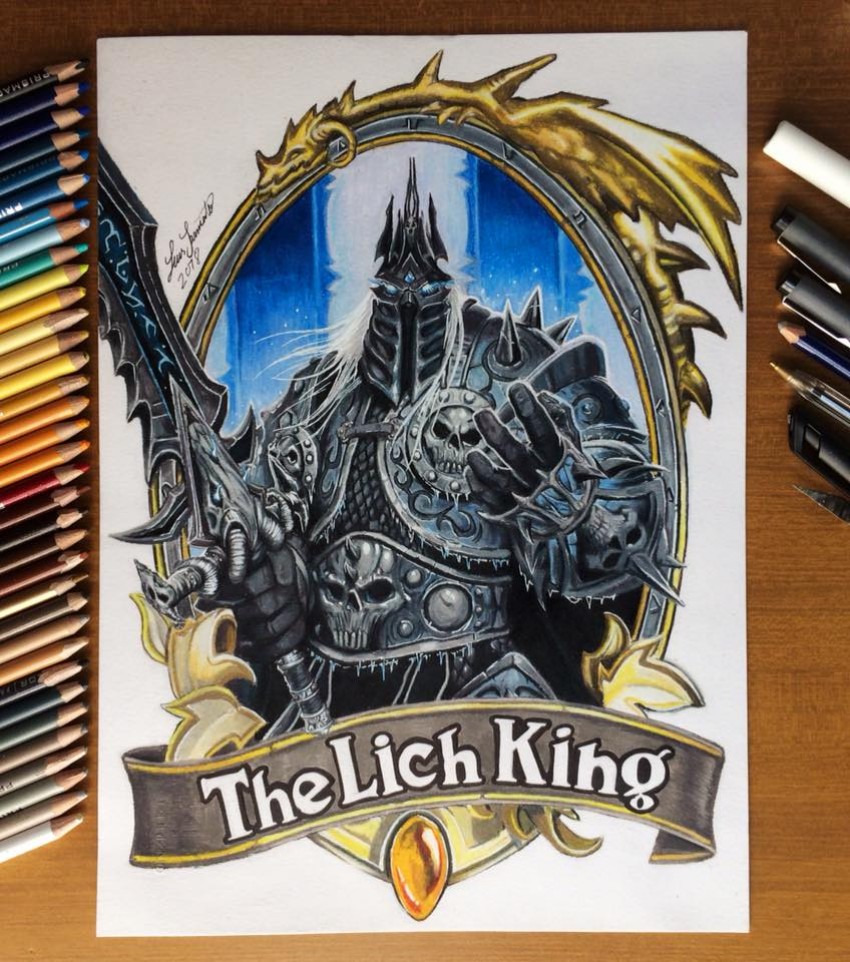 "The Lich King" carta del gioco Hearthstone colorato con le Prismacolor su un figlio F4 ruvido .
