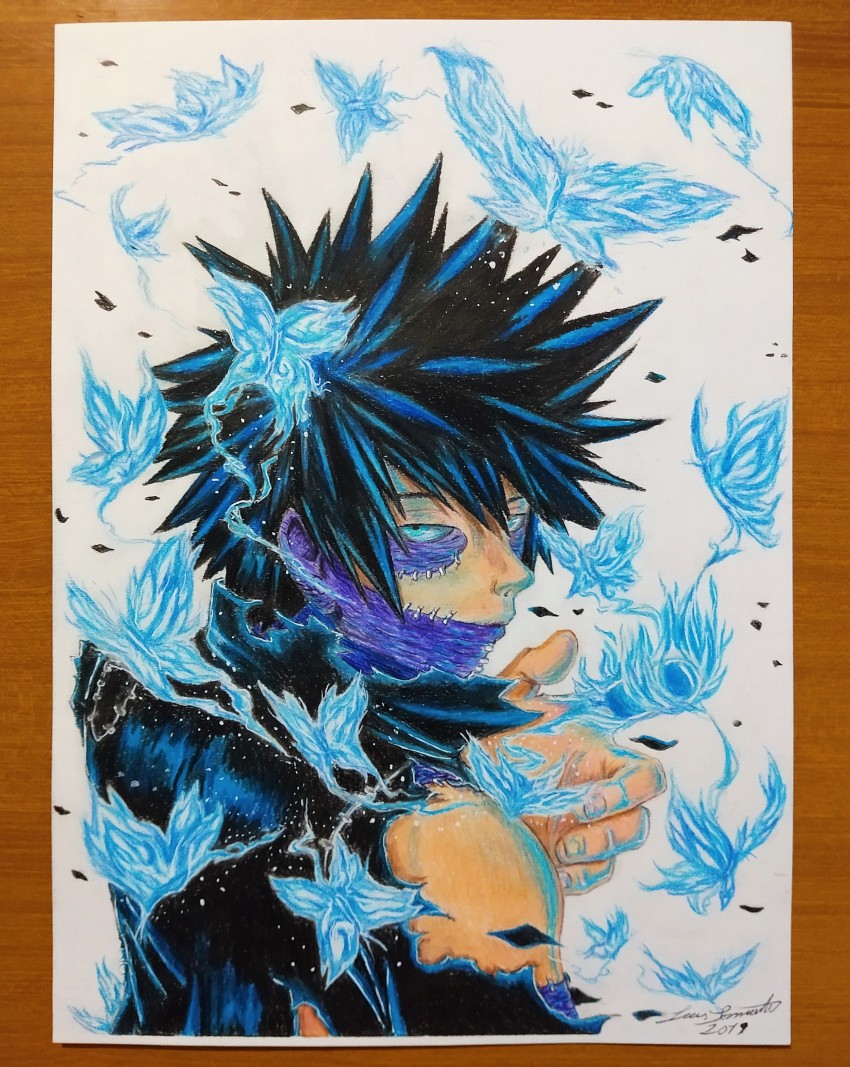 Materiali : matite Giotto/ foglio F4 ruvido. -Ho provato a usare matite non professionali per vedere cosa ne usciva fuori e sopratutto per mettermi alla prova,spero vi piaccia. -Dabi è un personaggio e antagonista dell'anime My hero academia, un villain con un passato oscuro in grado di usare delle fiamme blu.