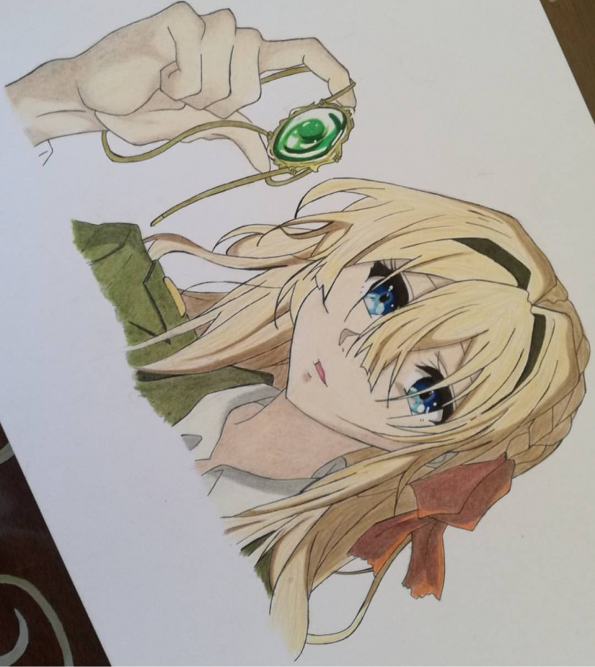 A portrait on a character from the anime "Violet Evergarden". Made with prismacolors pencils on A4 paper.