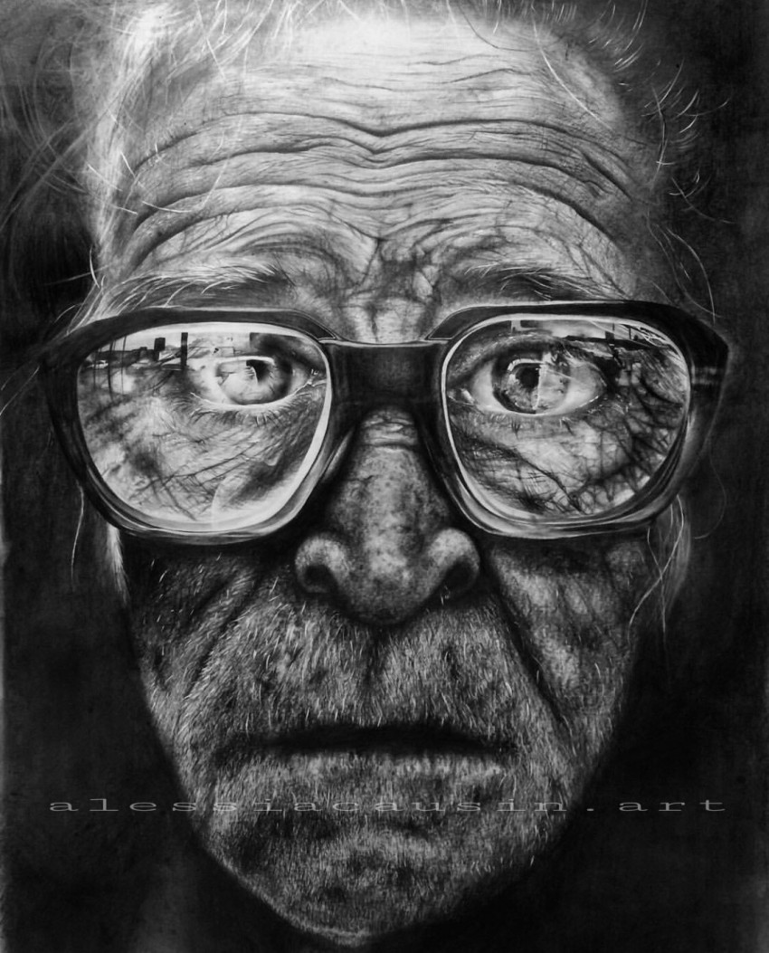 Graphite and white ink on white paper