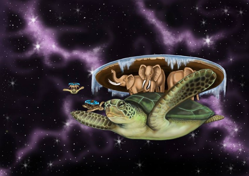 Secondo Terry Pratchett, e la sua saga letteraria più famosa, la terra è piatta. Ha la forma di un disco che viene sorretto da 4 elefanti poggiati sul dorso di una tartaruga detta La grande A' Tuin. Questa è la mia versione grafica di questo mondo fantastico.