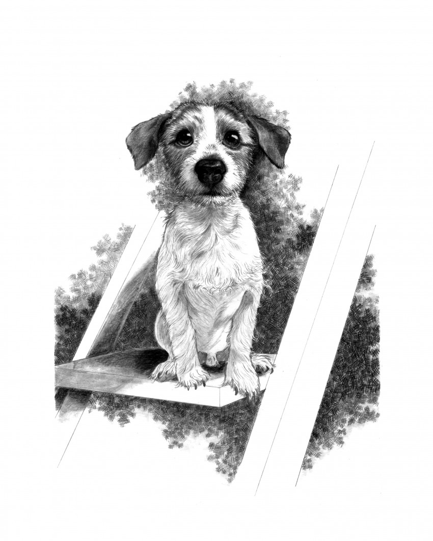 Ritratto di cucciolo di Jack Russell Broken. Matite su cartoncino liscio 24 cm x 30 cm