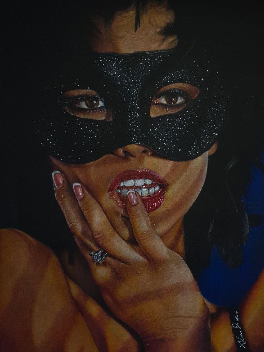 Matite colorate su cartoncino nero.