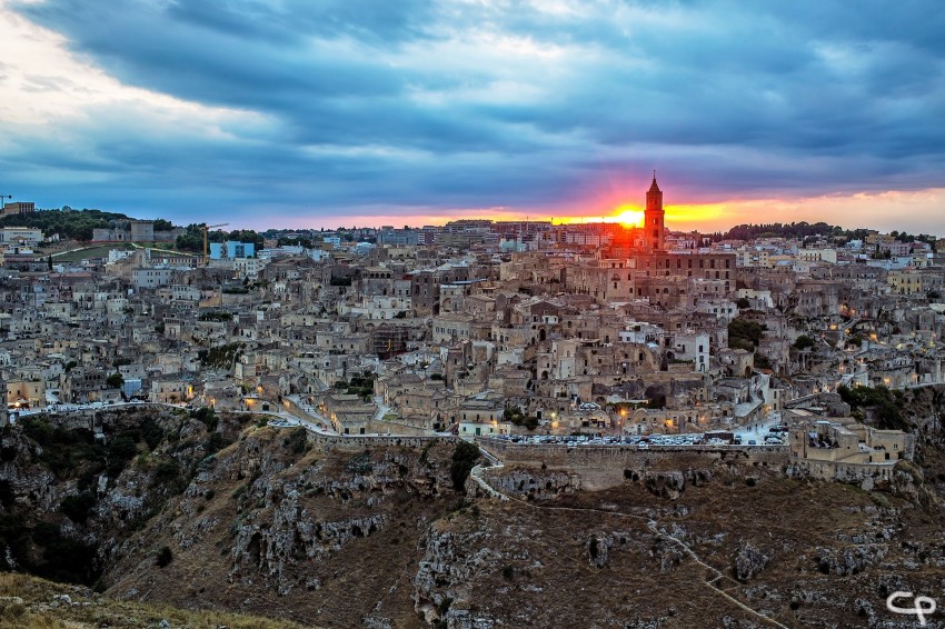 Tramonto su Matera, città patrimonio dell'umanità ecspitale europea della cultira