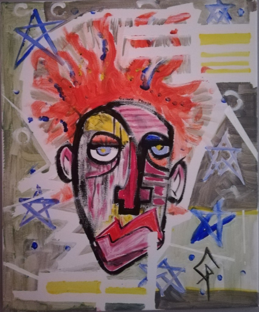 È un genio ripreso nell atto di concentrarsi e pensare dove i pensieri i numeri e le idee lo avvolgono. Rappresenta il genio di pensare che è annidato in ognuno di noi