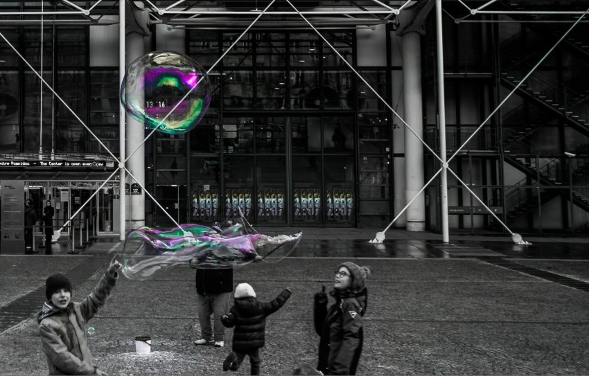 La teoria del relativismo di Einstein, ha cambiato la concezione di vita umana. Questa teoria si è ripercossa anche nell' arte, un esempio è la "Persistenza della memoria" di Dalí. Questa foto simboleggia il tempo racchiuso in una bolla di sapone, un elemento di elasticità e fluidità, che si restringe o si allarga a seconda del divertimento che è intrinseco nell' attimo. Il soggetto principale è il bambino, che rappresenta l' età e il tempo più invidiato, la spensieratezza genuina e la gioia incontrollata provocano un passare del tempo veloce, che si arresta solo nell' attimo nel quale è stata scattata la fotografia. È un fermo immagine di un preciso spazio temporale che non si presenterà mai più.