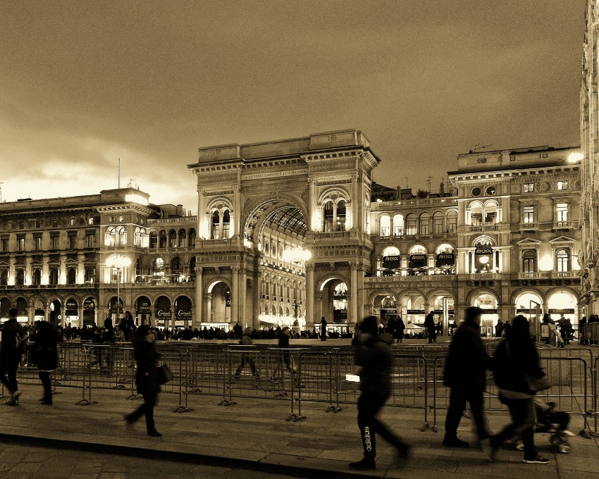 Una serata illuminata da luci calde passeggiando nella fredda Milano