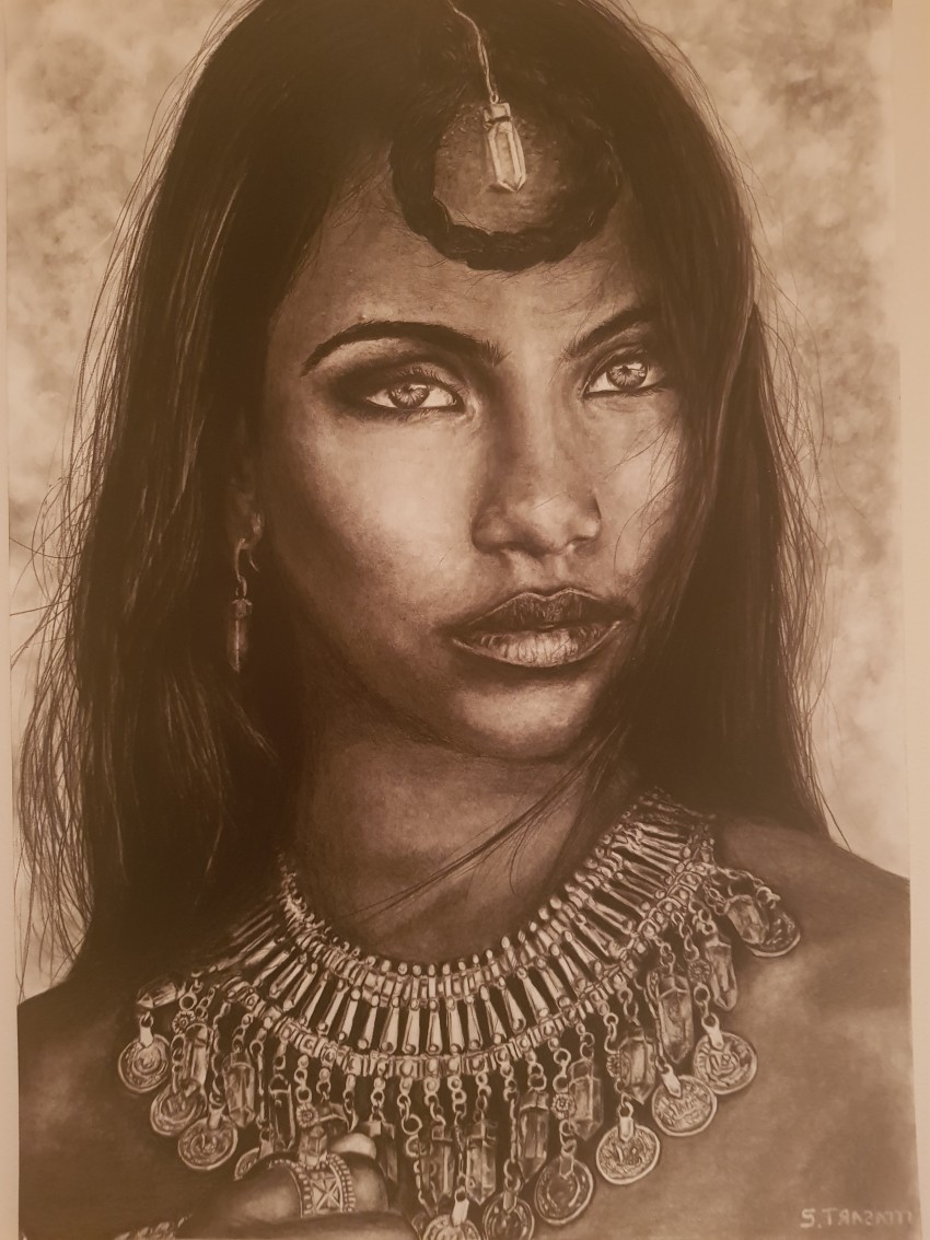 Carboncino e grafite su foglio A2,in memoria della modella maldiviana Raudha Athif trovata morta nella sua camera di albergo.
