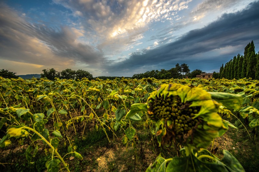 Sotto i cieli della Toscana, come magiche antenne roteanti in direzione dell'ultimo sole