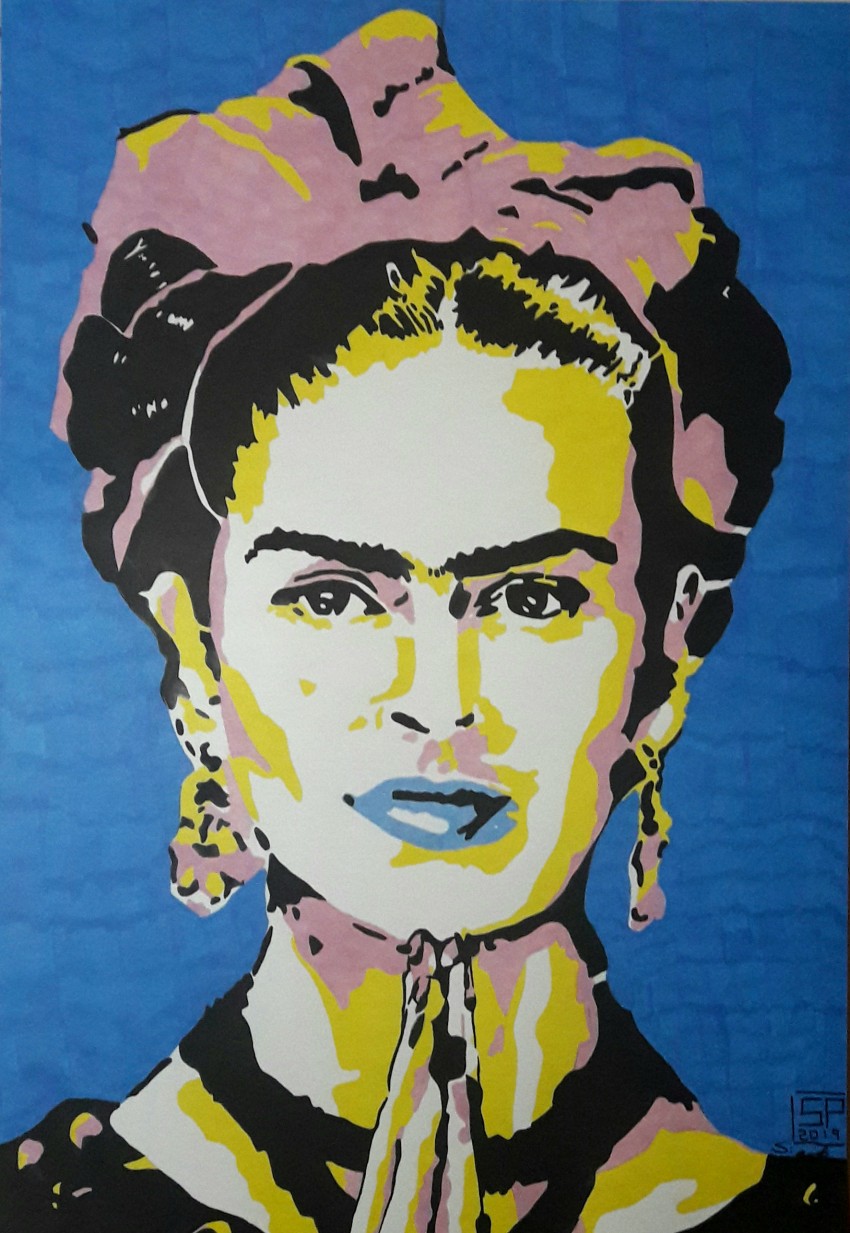 Poster Frida Kahlo 33x48, realizzato con stile stencil e pantoni.
