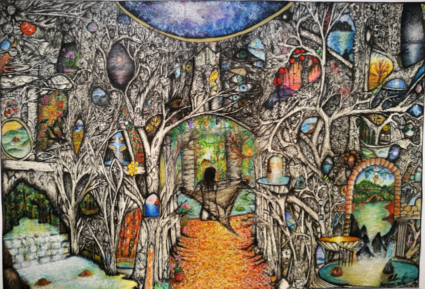 This one actually took something like more than 45 hours and the subjects is taken from the Tasso's XVII century poem "Jerusalem delivered". Armida is a witch that uses lust to hypnotize the christian soldiers distracting them from the conquer of Jerusalem. The Garden itself (where Armida's live) is described as witchered, with optical illusions and full of "artificial" plants and fruits. I filled up the drawing with symbols of the baroque age, such as watches, bones and skulls for the theme of death and vanity of life, mirrors that reflects illusory landscapes and of course a remark of the theme of the sexuality.