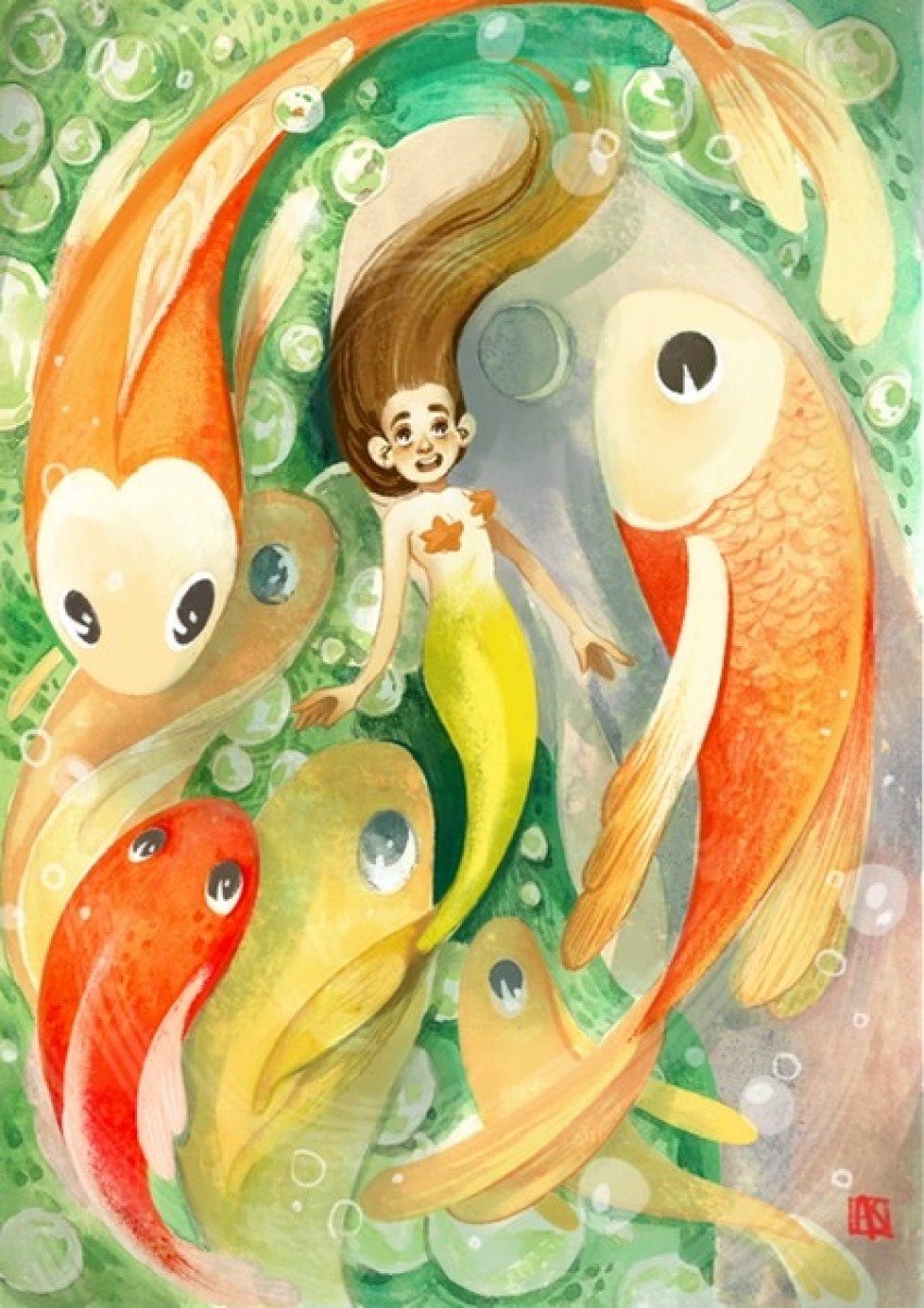 giochi e bolle tra sirene e pesci rossi - games and bubbles between mermaids and goldfish
