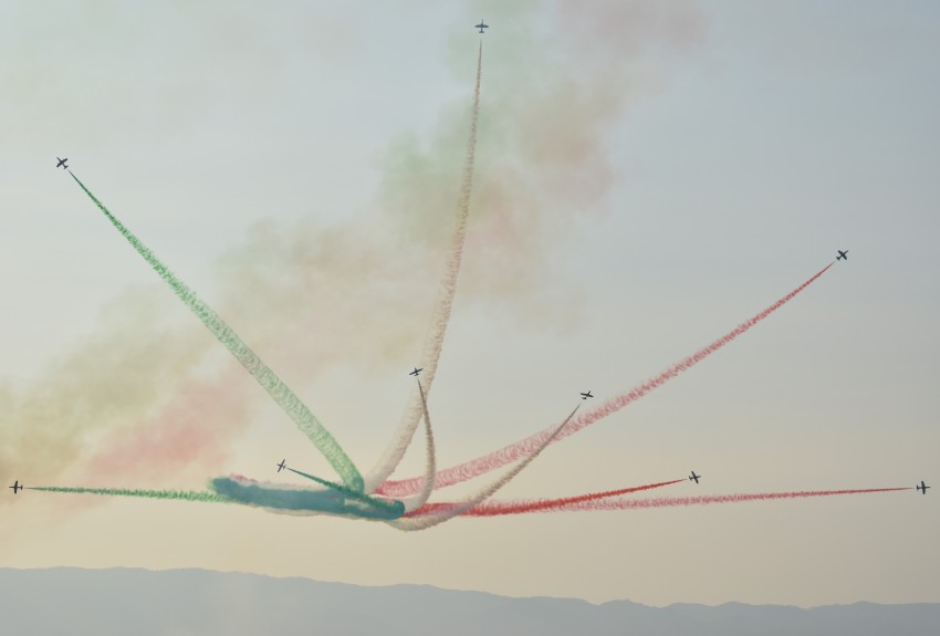 La Scintilla Tricolore è una manovra della Pattuglia Acrobatica Nazionale (PAN) dell' Aeronautica Militare Italiana nata nel 2015. Essa vede protagonisti 9 dei 10 aerei che generalmente partecipano alle esibizioni e viene disegnata nel cielo utilizzando gli ormai noti fumogeni colorati. Foto scattata durante l' Airshow a Reggio Calabria (agosto 2019).