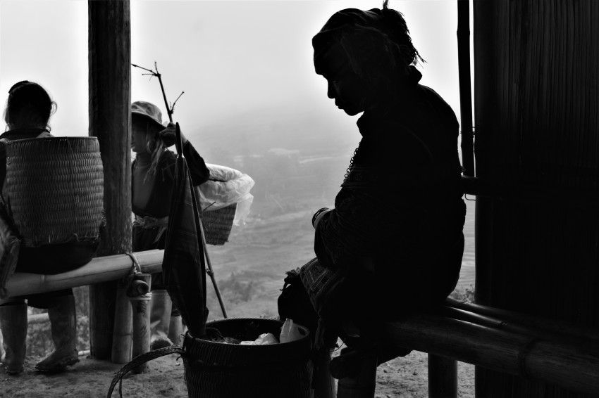 La foto è stata scattata a Sapa Vietnam durante un trekking. Le donne nell'immagine ogni giorno cercano di guadagnare il possibile per la sopravvivenza della famiglia.