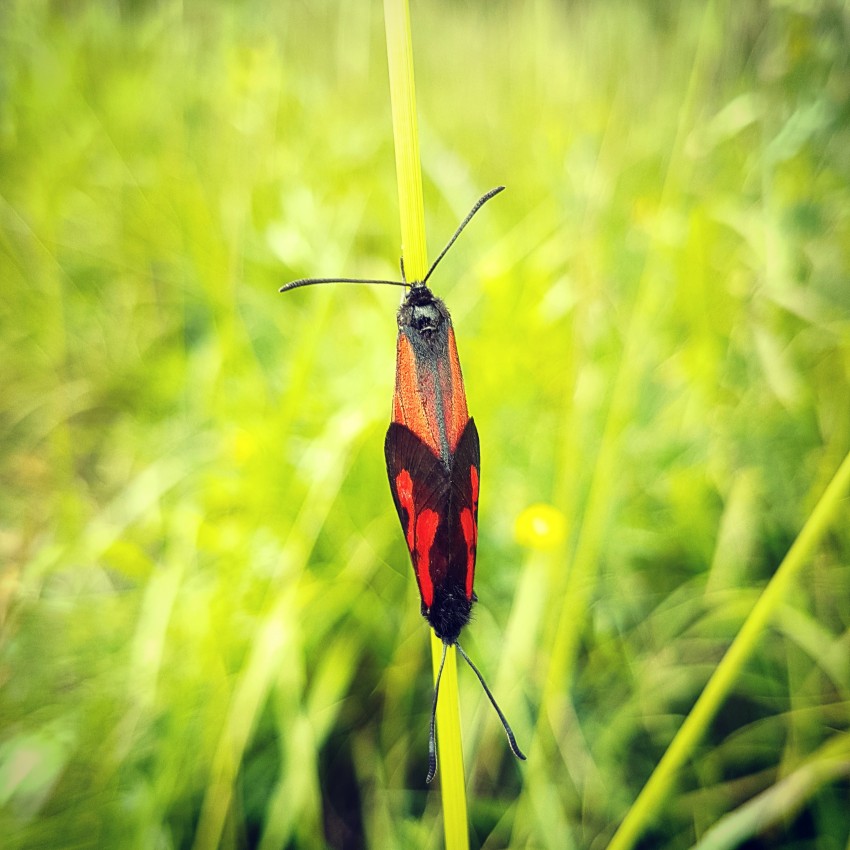 Due farfalle delle situate nelle Alpi piemontesi, adagiate su un filo d'erba mentre copulano.