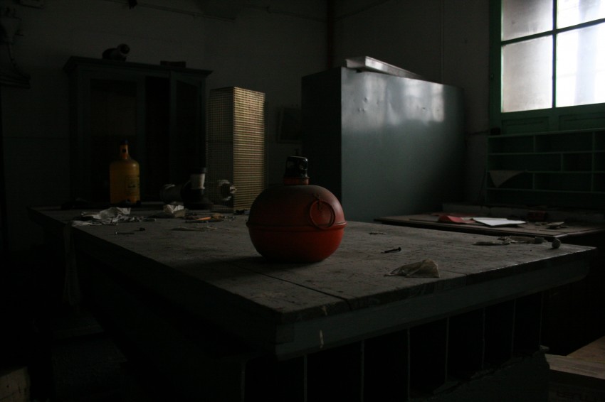 Scatto realizzato in un'officina all'interno di un edificio portuale a Trieste, nel corso di un sopralluogo di lavoro.