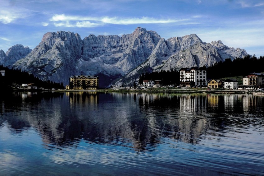 Il fantastico lago di Misurina con le montagne che fanno da cornice