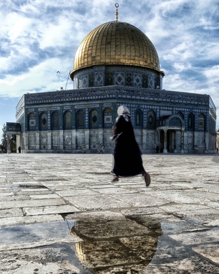Nella famosissima spiantata dei tempi di Israele, ragazza corre per entrare al tempio di Omar