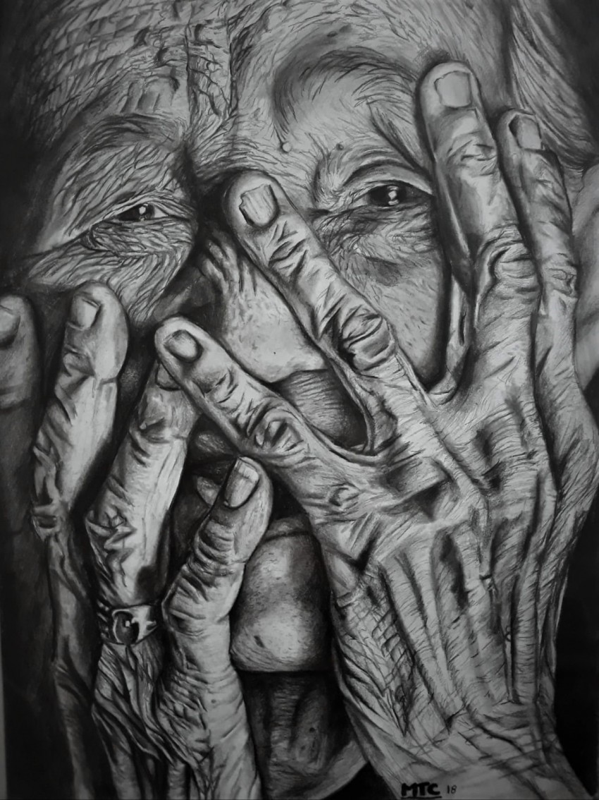 Le rughe sono i segni che lasciano le varie esperienze su i volti della gente. Sono simbolo della saggezza, che la natura col tempo ci regala. In questo ritratto le rughe invece enfatizzando l’effetto della disperazione e dell’angoscia della donna. Misure: 30x40