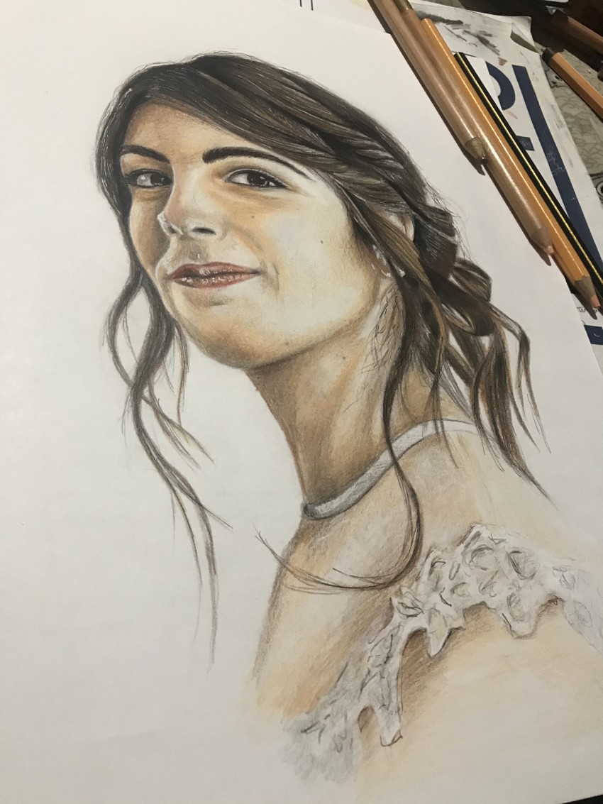 “Giovane sposa” 23x35cm Pastelli su liscio Faber-castell Cretacolor Ritratto raffigurante una giovane sposa prima del rito matrimoniale.