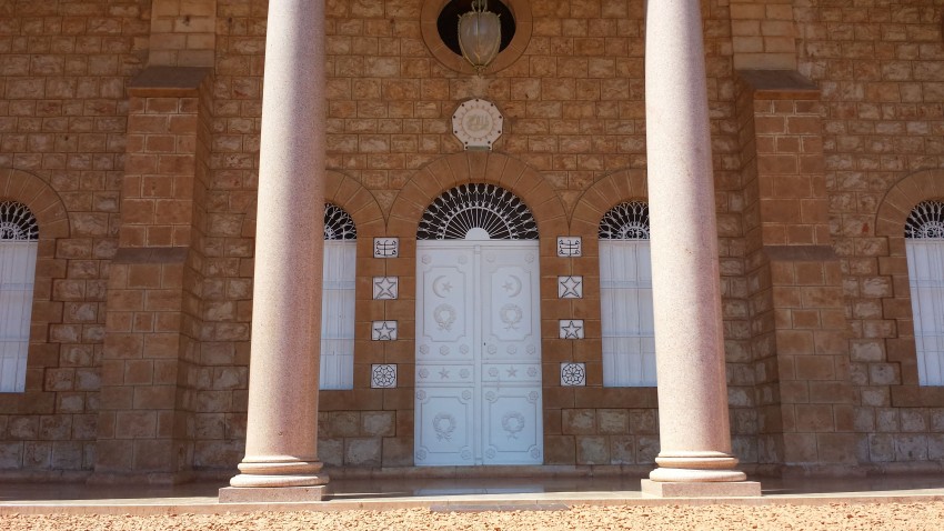 Particolare della porta sacra nei giardini pensili di Haifa, Israele