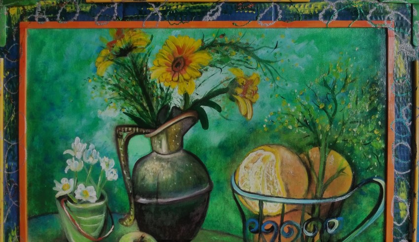 dipinto d'autore ,Olio su tela cm,50x60 che rappresenta un coloratissimo dipinto natura morta. La rappresentazione della natura e della vita quotidiana e' tra i soggetti preferiti dall'artista. OPERA FINEMENTE INCORNICIATA PERCHE' E STATA REALIZZATA INTERAMENTE A MANO.