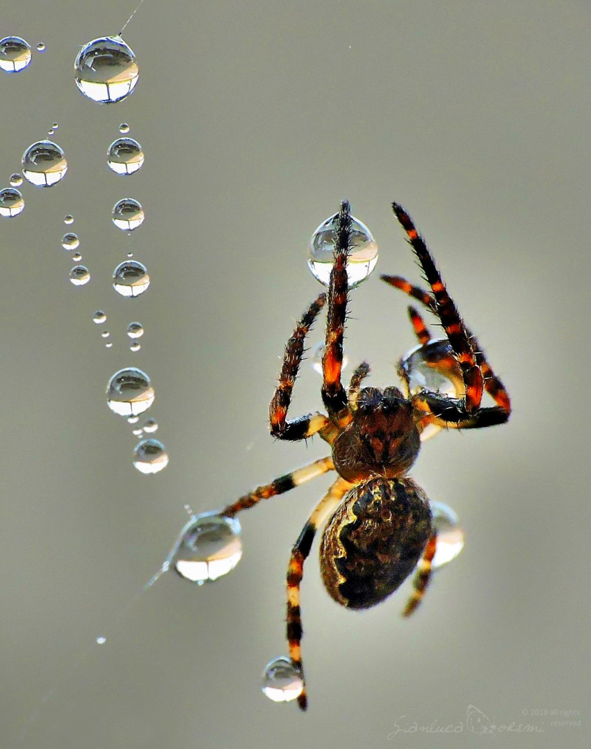 Un esemplare di Nuctunea umbratica esce una mattina d'inverno a liberare la ragnatela dalle gocce di nebbia dando la parvenza di un giocoliere