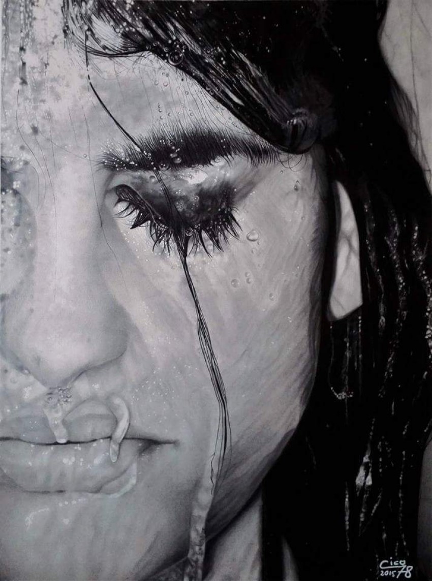 Ritratto matite caran d 'ache su foglio Arches aquarelle hot pressed "Sulla tua pelle" 60x80