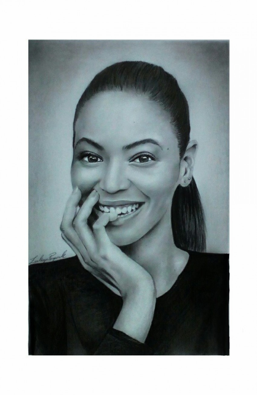 Quando inizio un disegno mi trema la mano, provo sensazioni analoghe a quando prendo un aereo per raggiungere un posto meraviglioso. Le fasi emotive che mi pervadono sono la paura, la curiosità, la libertà e la meraviglia per ciò che vedo una volta arrivato. Ritratto Beyoncé. Matite su foglio liscio.