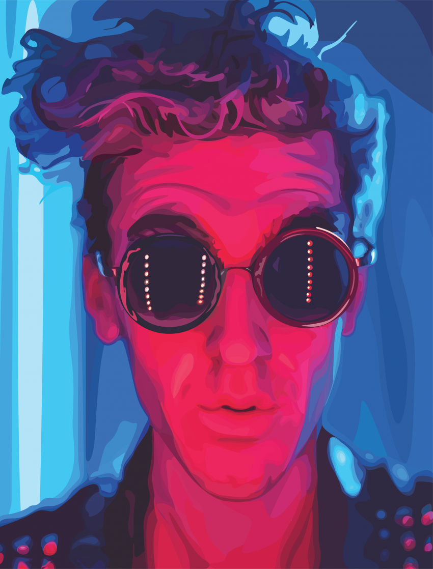 A man colored by neon ligths, completely recreated with Illustrator