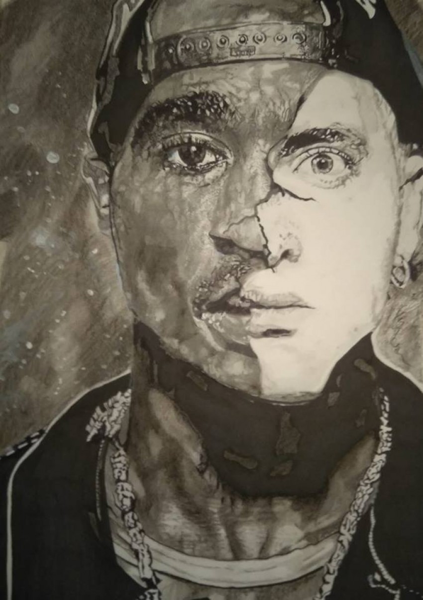 portrait 2PAC-EMINEM..MATITE CARBONCINO E CHINA 33X48 FABRIANI RUVIDO