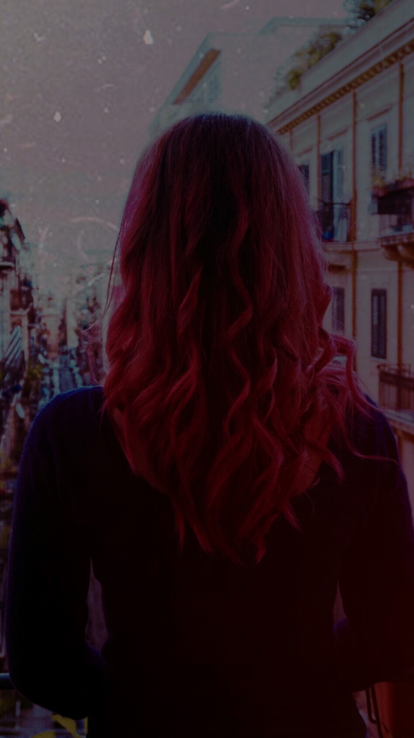 Dark pink hair and a dreamy girl