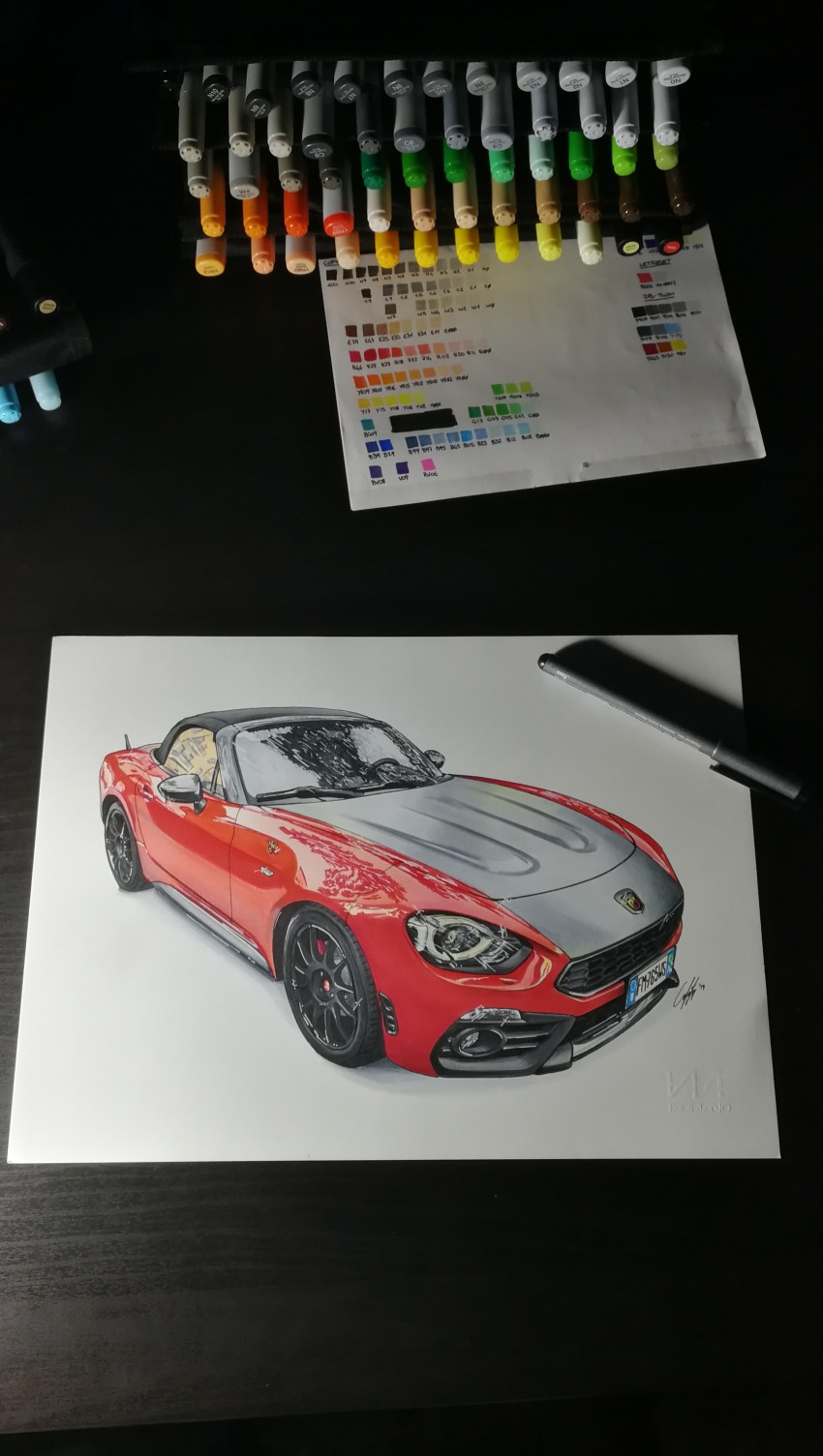 La 124 spider è una bellissima rivisitazione in chiave moderna dell'omonima auto storica. Ho voluto realizzarla tramite pantoni, nella classica livrea rosso lucido-nero opaco