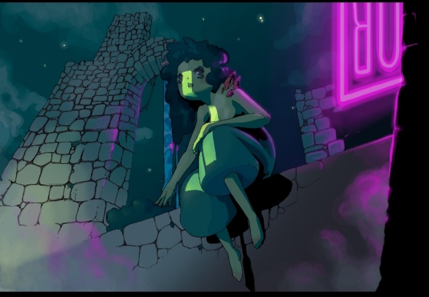 In questo scenario sono presenti due elementi contrapposti: la natura (incarnata in una donna verde in abiti pop) e le "istallazioni" create dall'uomo. La natura è spaesata mentre si aggira di notte, perché sta scoprendo le luci artificiali che la illuminano per la prima volta.