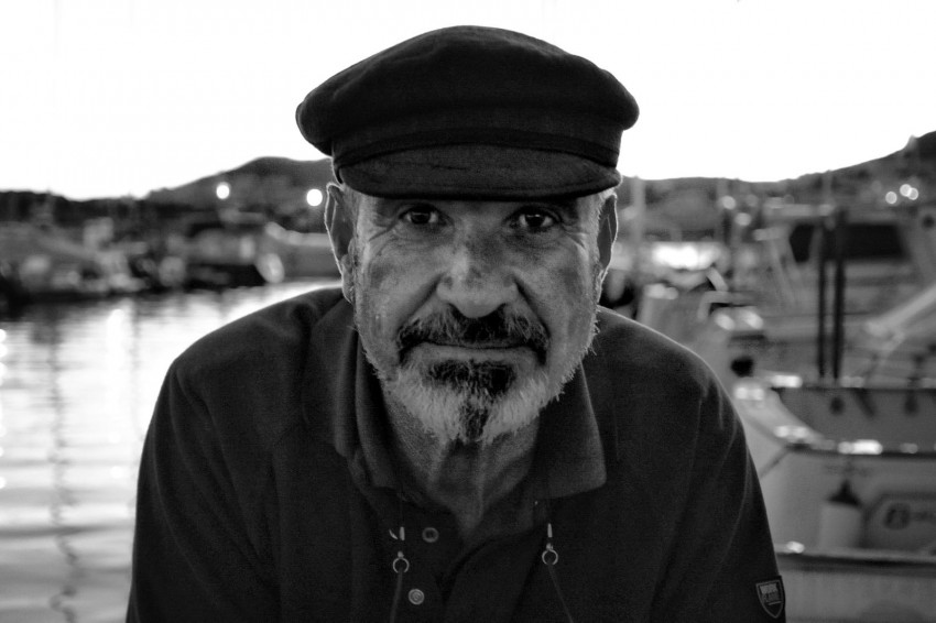 Un marinaio lavorando a mani nude . Fili, mani crude , sperando in mare calmo pieno di emozioni effimere
