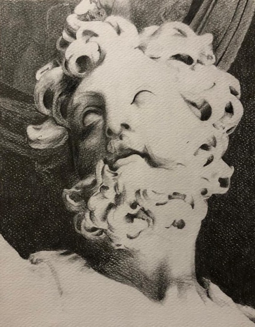 Riproduzione del David di Michelangelo 33×48 grafite bianco e nero