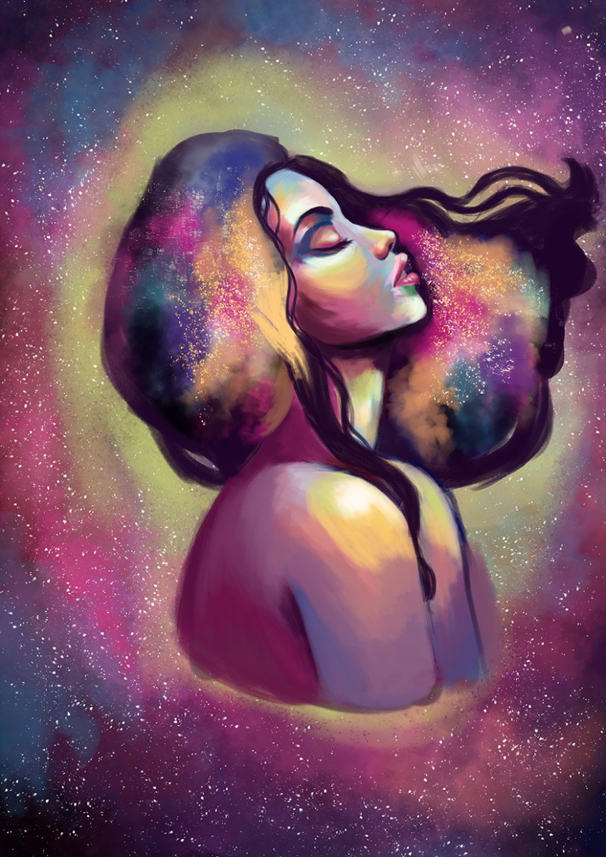 Siamo solo dei puntini nell'universo ma anche se microscopici, esistiamo,facciamo parte della famiglia,coesistiamo. Illustrazione digitale.
