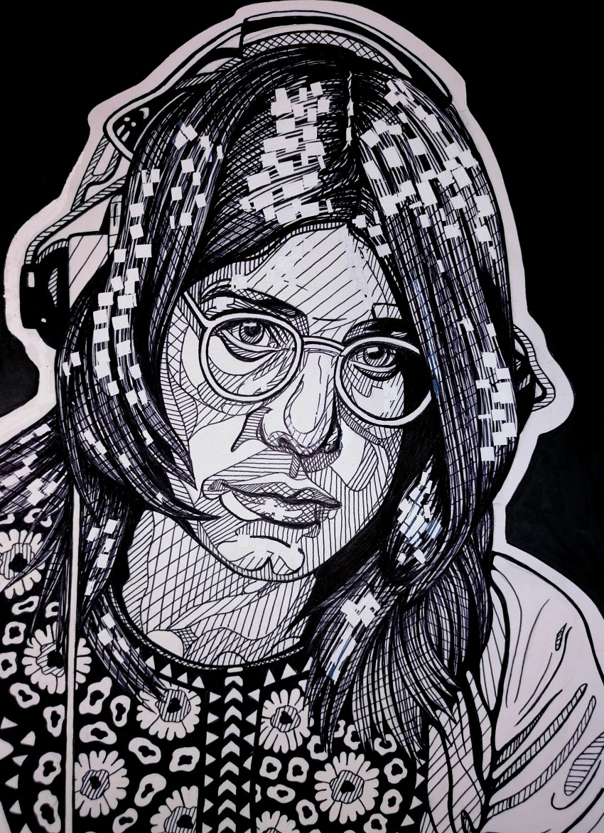 ritratto di Ozzy Osbourne realizzato con chine su carta