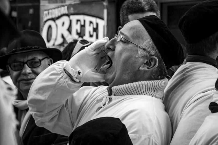 Il tipico "cittadino" devoto di Sant'Agata mentre a gran voce recita la sua preghiera per la Santuzza. Trapela a primo impatto una devozione smisurata che rimbomba sulla scritta ORFEI di un manifesto circense. Dicotomia perfetta per descrivere ciò che molti definiscono "uno spettacolo da circo a cielo aperto" che fa scaturire una riflessione: "a cosa è veramente devoto?"