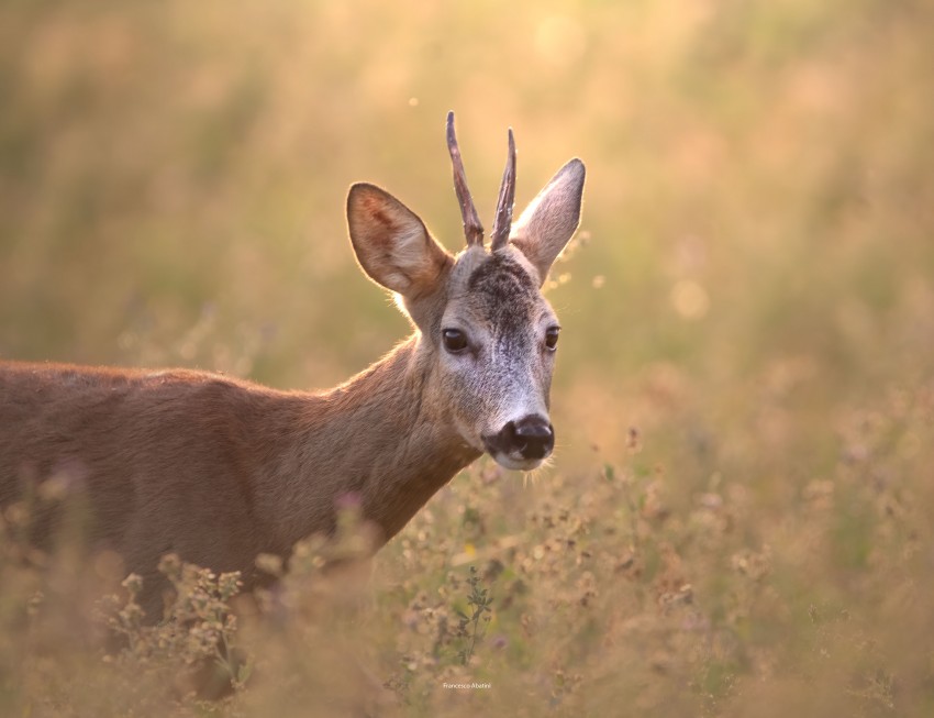 Alle prime luci del mattino una magico incontro con un giovane capriolo nei colli marchigiani.