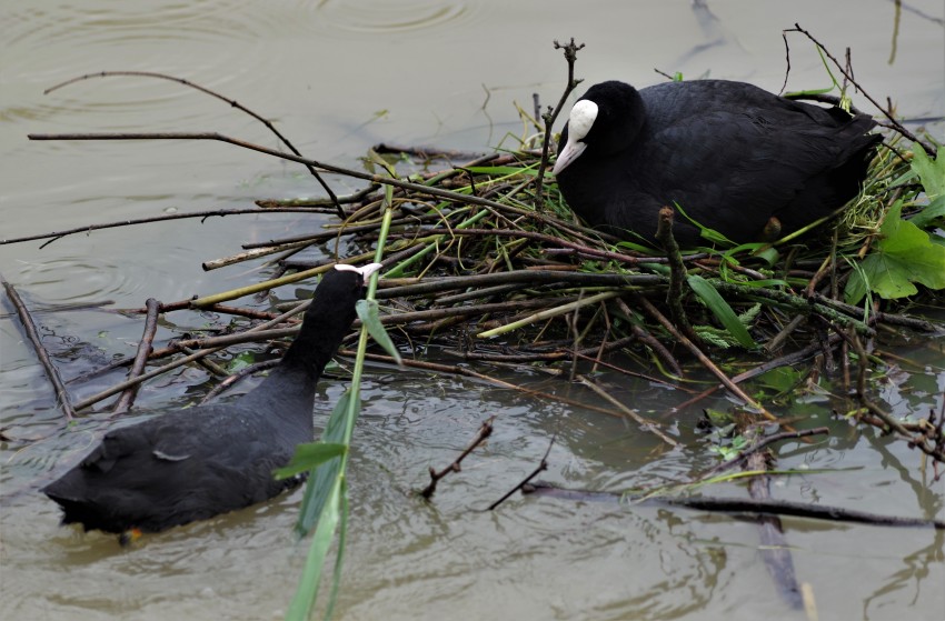 Lavorare sodo,sotto la pioggia,per ricostriuire il nido distrutto dalla tempesta....