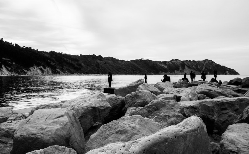 Queste ombre di uomini, donne e bambini vibrano inconsistenti di fronte al silenzio naturale di Portonovo