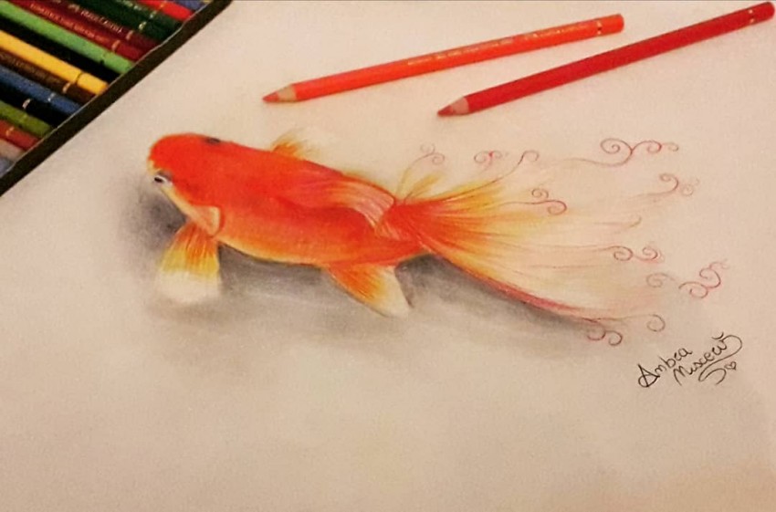 Ho disegnato questo pesciolino rosso con semplici pastelli Faber Castell, adottando uno stile 3d. Spero vi piaccia!